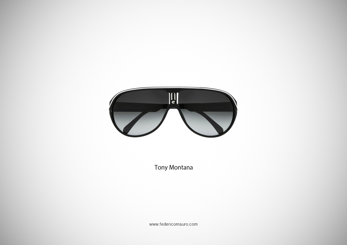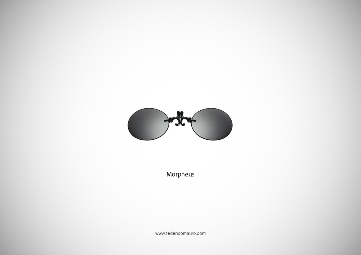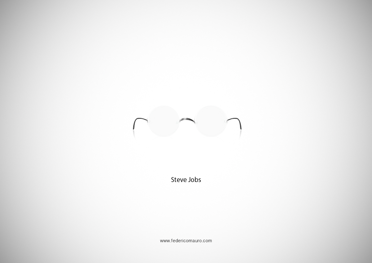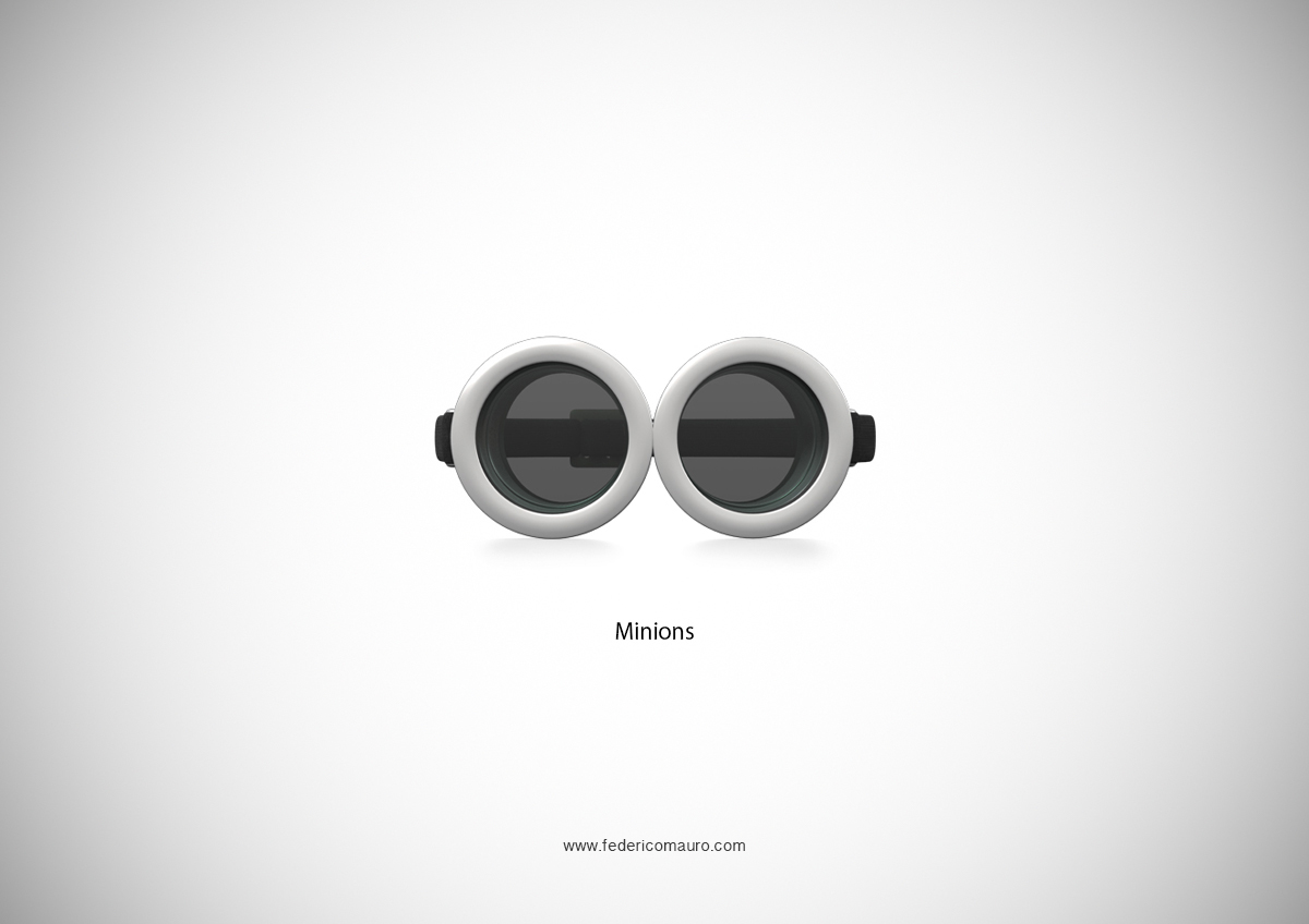 Federico Mauro es un genial director de arte y diseñador multimedia italiano que en 2013 hizo una recopilación de esas afamadas gafas en una especie de juego de adivinanzas. Todos los modelos seleccionados por Mauro funcionan como metonimias (la parte por el todo), y tienen la personalidad y la notoriedad necesarias para sustituir al personaje que las llevaba. Es una colección atractiva y evocadora. Que la disfrutes.